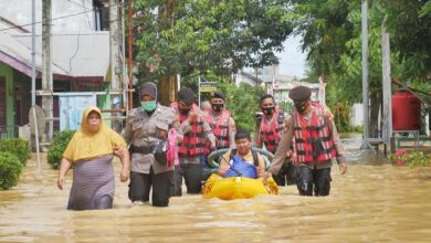 Polisi Wanita Turut Evakuasi Korban Banjir