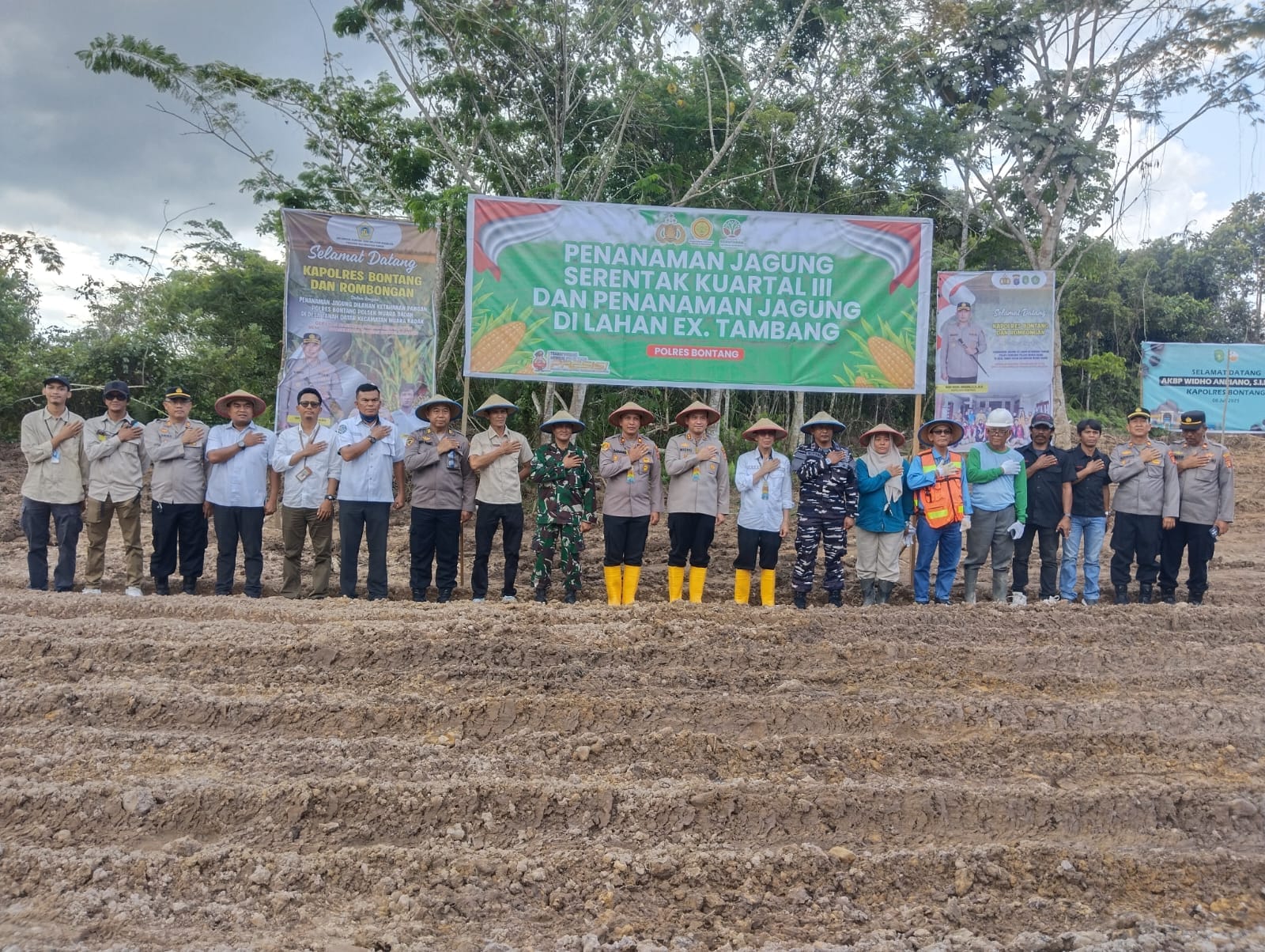 Muara Bafak – Kapolres Bontang, AKBP Widho Anriano, S.I.K, M. SI, melaksanakan kegiatan penanaman jagung serentak Kuartal III di lahan Perhutanan Sosial, tepatnya di lahan Ex. Tambang PT. Lana Harita, RT. 05 Dusun Utara, Desa Tanah Darar, Kecamatan Muara Badak, Kabupaten Kutai Kartanegara, pada Rabu, 9 Juli 2025, pukul 14.00 WITA.